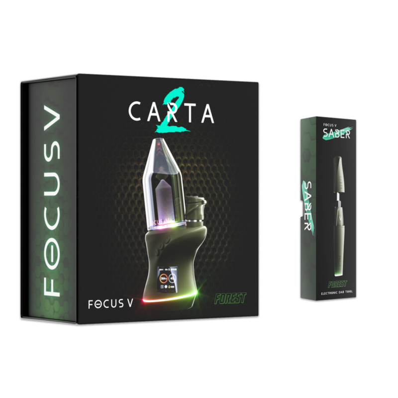 This bundle includes a CARTA 2 Midnight & a Saber Midnight electronic dab tool.